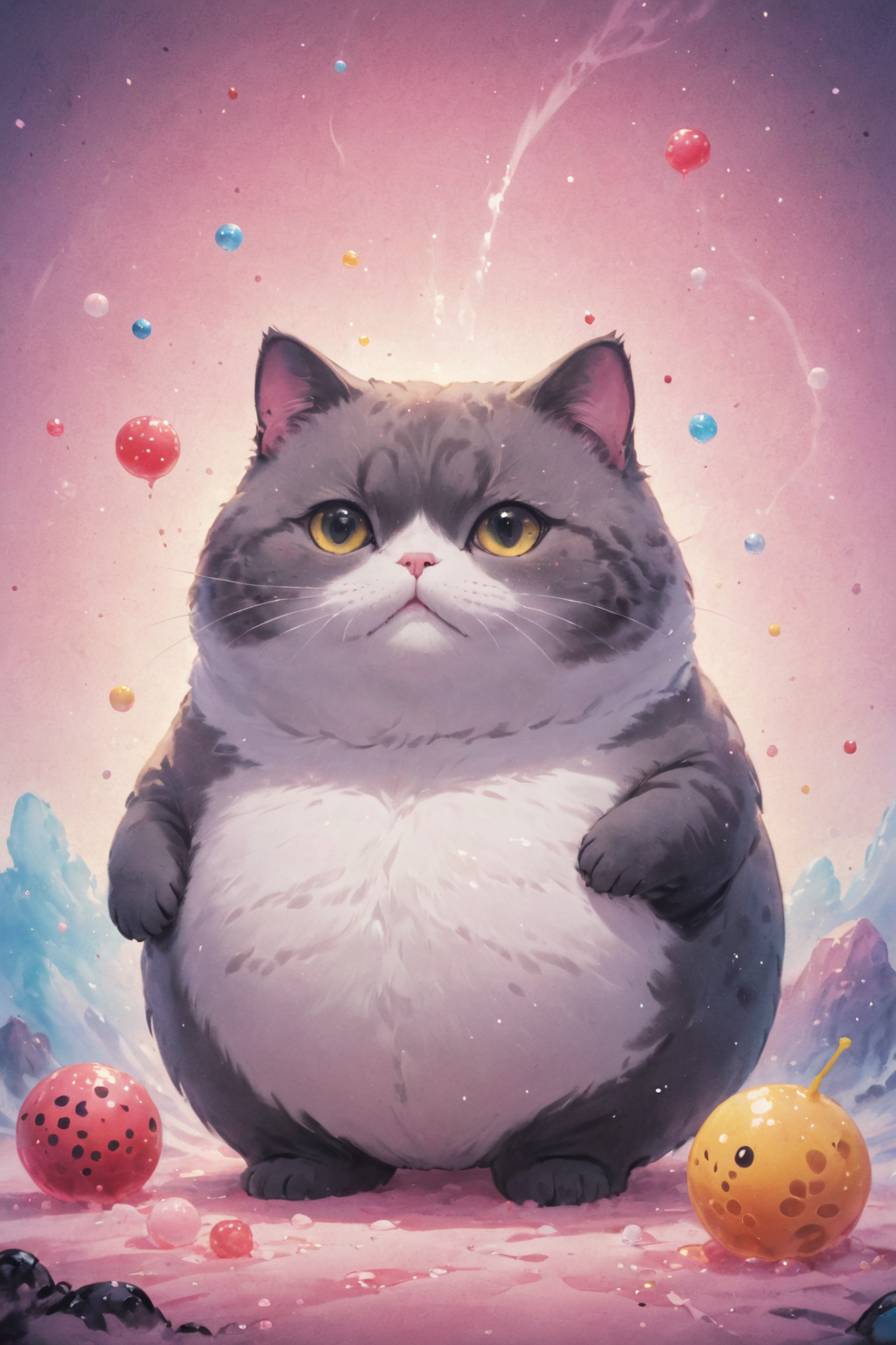 cosmic canvas,flawless, clean, masterpiece, professional artwork, famous artwork, painting of a chubby cat, ( bubble tea background), <lora:Cosmic_Canvas_SDXL:1>