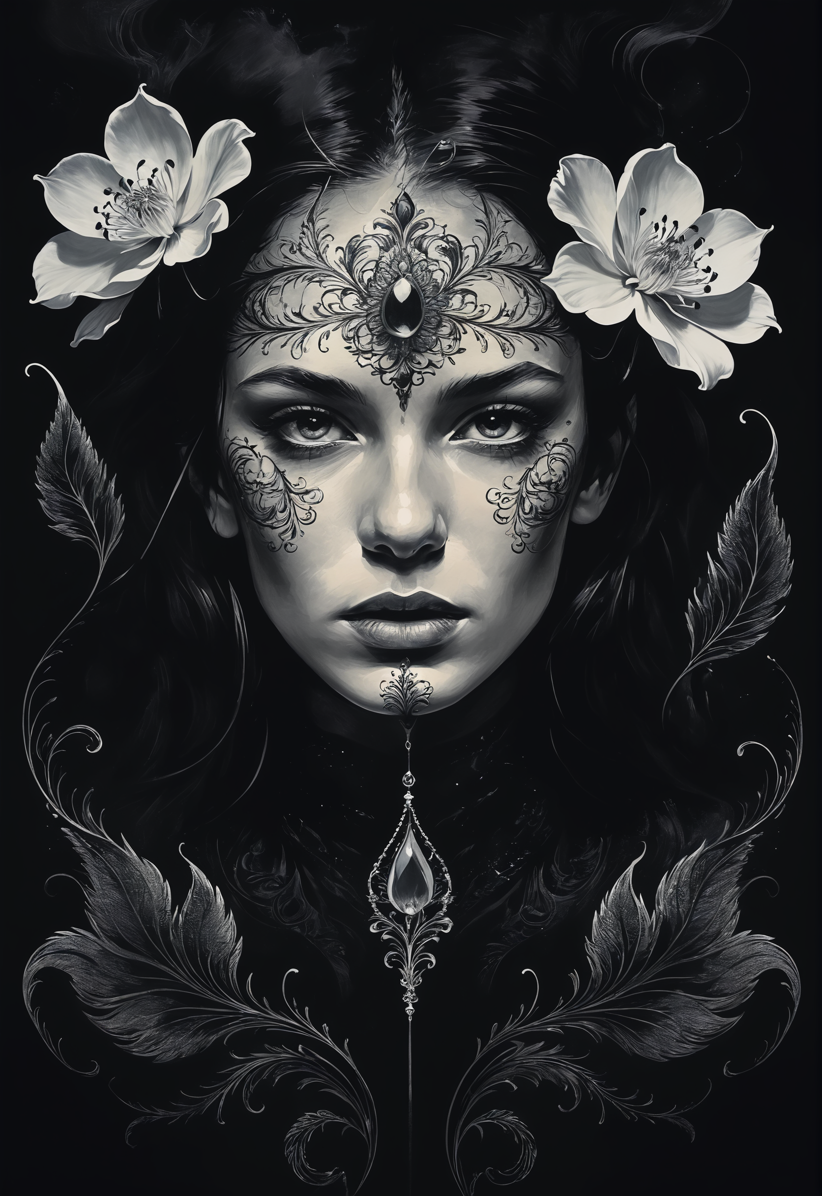 pitch black dark background, [:blooming filigree:6] rising vapors [in the form of a disintegrating (woman's profile:0.4)::4], masterpiece by Anna Dittman, Dan Hillier, Jean Nouvel, Andre Kertesz, dark art, chiaroscuro <lora:Dark_Novel:0.7>