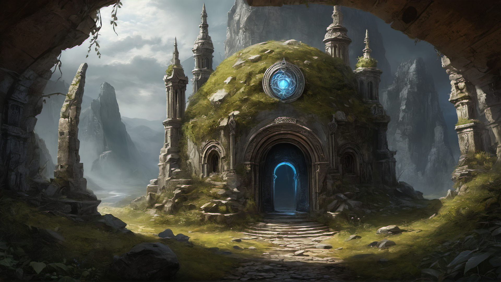 , oil painting, traditional media, realistic, (((ruined landscape))) , demonic composer, (((night))), strange elvish (((portal))) in the centre, masterful, timeless, high definition, sharp, striking, intricate details, vibrant, dynamic, crisp quality, cinematic, heavenly, captivating, very refined, <lora:add-detail-xl:1> famous artwork by (jesper myrtos:1.2), detailed expressive eyes, fantasy style, the curious nutdonk understands itself as the guardian of the much smaller relentless wartwibbles, it is a semi-intelligent creature that likes to decorate its chitinous armor plates with mysterious runes of mancfrubbled dazzlefluff, the image shows it standing guard in an overgrown ruin filled with trobberdaffled artifacts on planet slormslug x