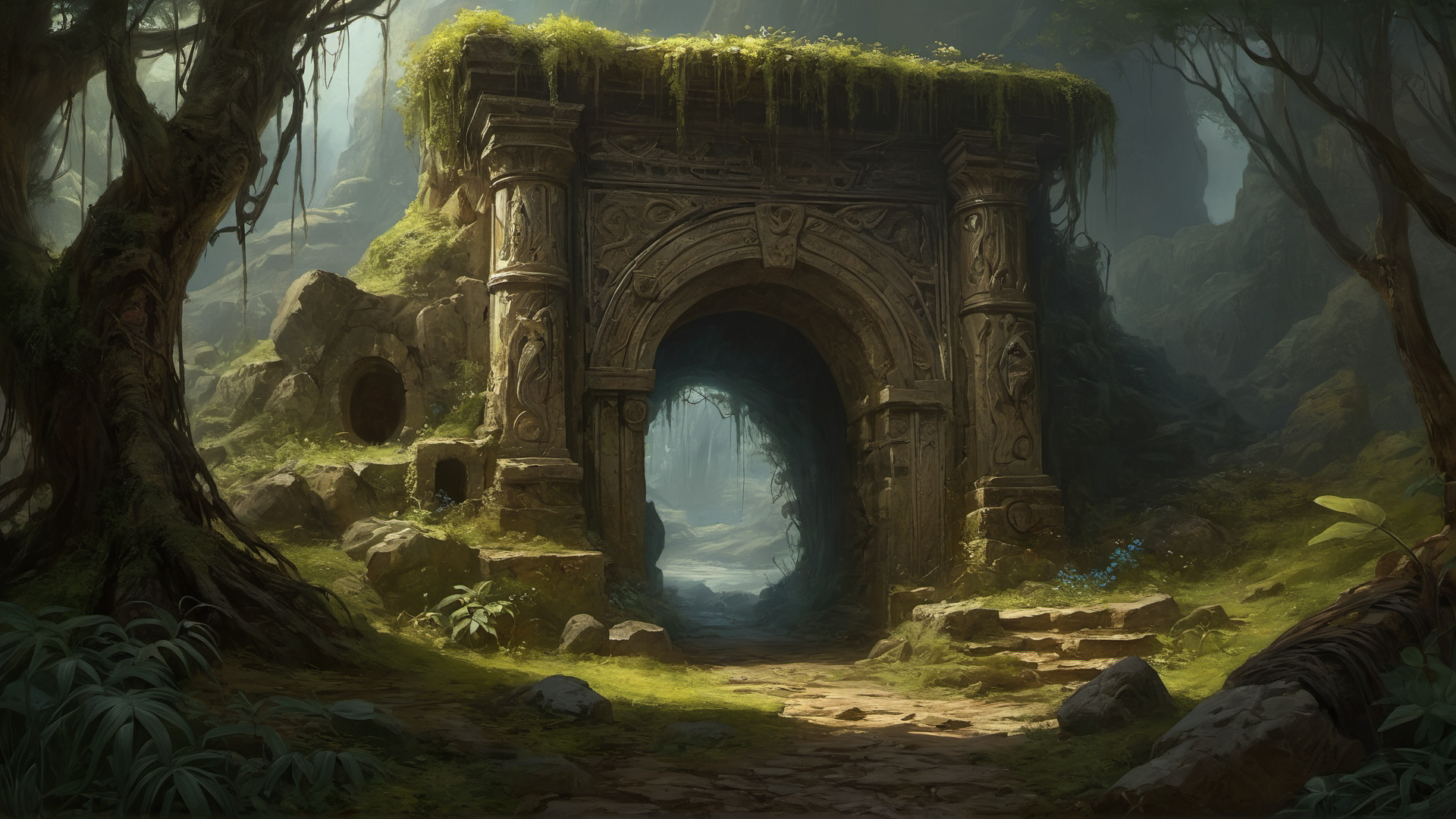 ., (Oil painting) (by Jean-François Millet), (by Gustave Courbet) , (by Jules Breton), close up, dark fantasy, <lora:add-detail-xl:2>, oil painting, traditional media, realistic, , strange open ((portal)) in the centre which lead to the paradise, the landscape around the portal is desert and elvish ruins, famous artwork by (archan nair:1.2) and (rebecca guay:1.1), detailed expressive eyes, fantasy style, the shrieking bonegobbler, a mischievous jungle dweller, covered in blorfing leaves and most often accompanied by the tiny bioluminescent fierce swampzubbler, it grunkles among gnarled trees and the enchanted plumbusflowers in the heart of the lush quadderbonused lands of planet you'renotwelcomegoaway