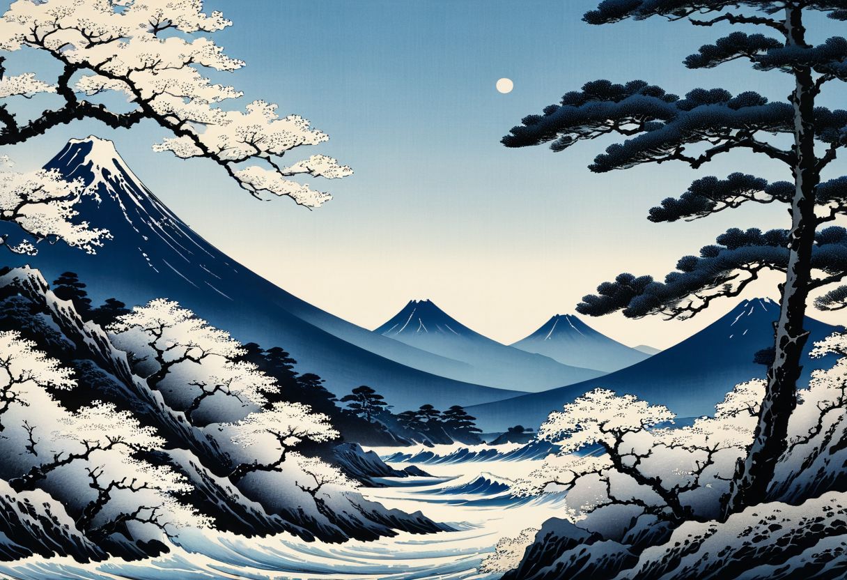 style of Katsushika Hokusai, (Shades of contrast:1.1), (light and shadow:1.2), (captivating effect:1.1), (photography technique:1.1), (detailed composition:1.1), (high resolution:1.1), (clear contrast:1.1), (graphic design:1.1), (artistic interpretation:1.1), (play of angles:1.1), (nuanced textures:1.1)