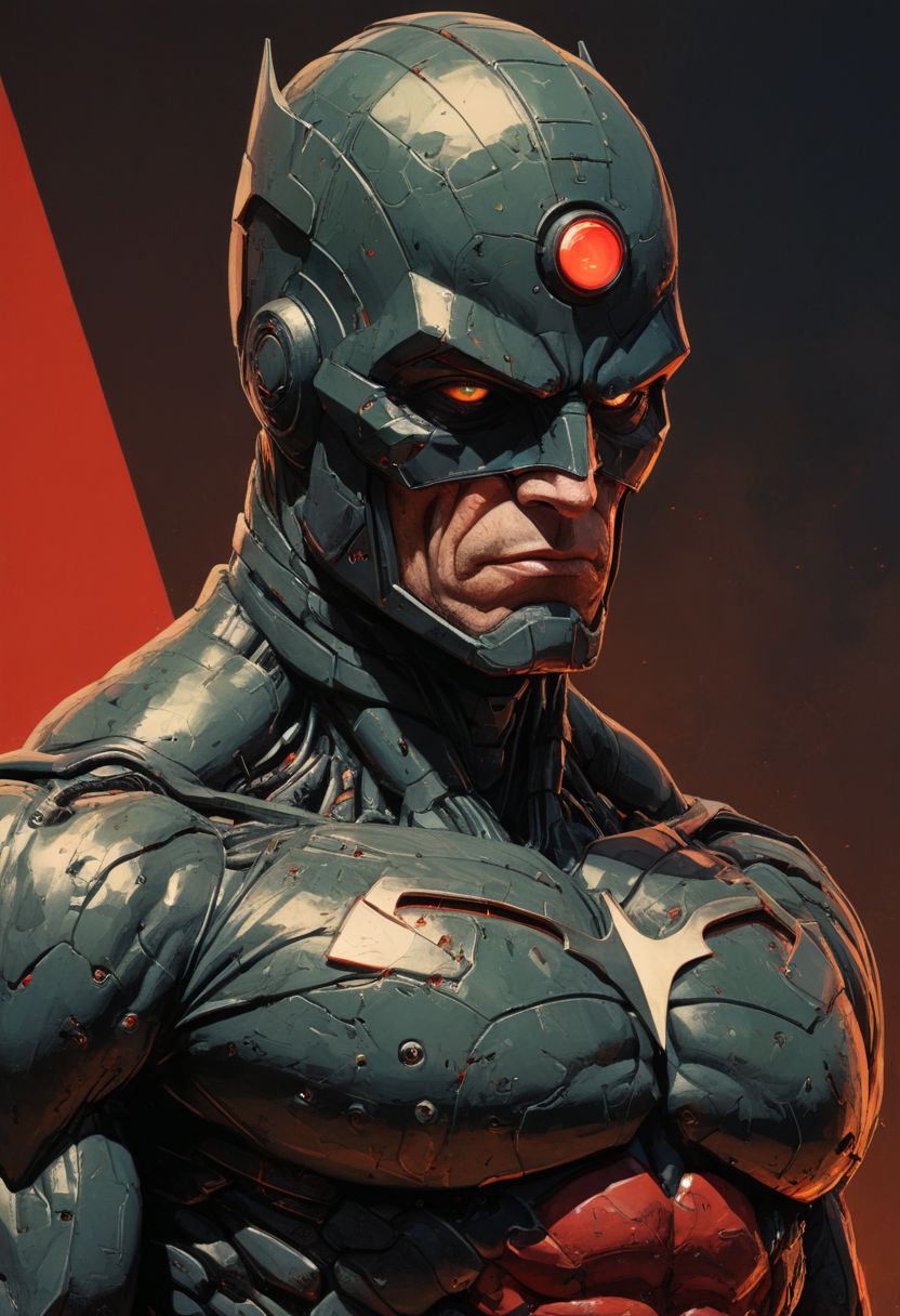 infernal, muscular, ephemeral, cartoonish, bizarre, by DC Comics, Andreas Levers, by Moebius, (professional, intricate details, masterpiece, best quality:1.5), poster art style, Professional, modern, eye-catching, highly detailed, dark palette, , army gray and Red hue,