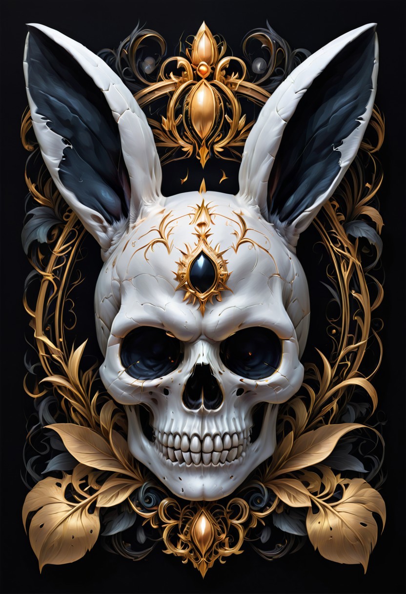 A white skull with rabbit ears on a black background in the style of a game icon.