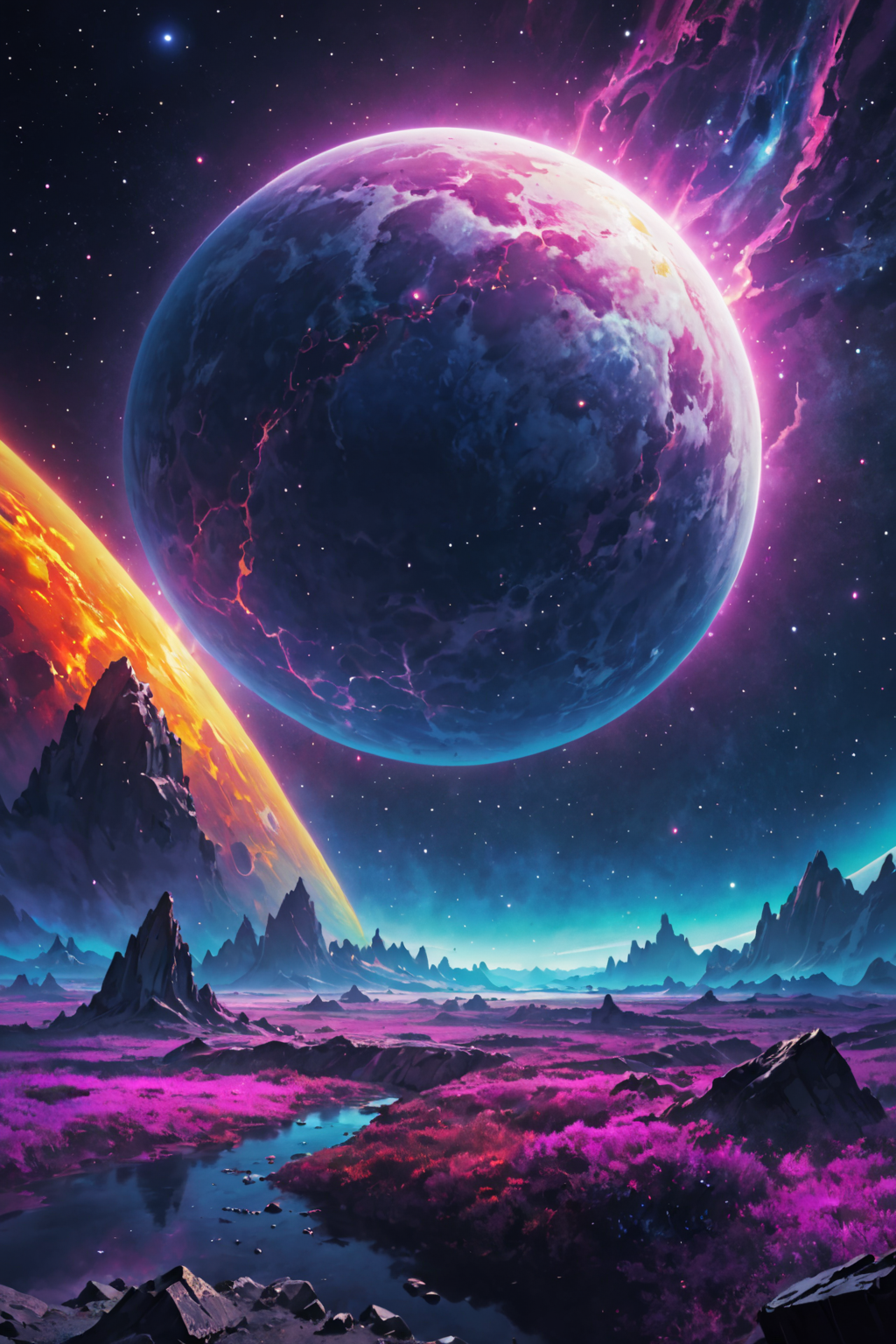 ultra realistic 8k cg, flawless, clean, masterpiece, professional artwork, famous artwork, cinematic lighting, cinematic bloom, abstract and colorful paint style, background focus,painted world, colorful splashes, deep space, cosmic, (((otherworldly structures in the distance))), <lora:Painted World:.5> detailed lighting, CG render., 8k