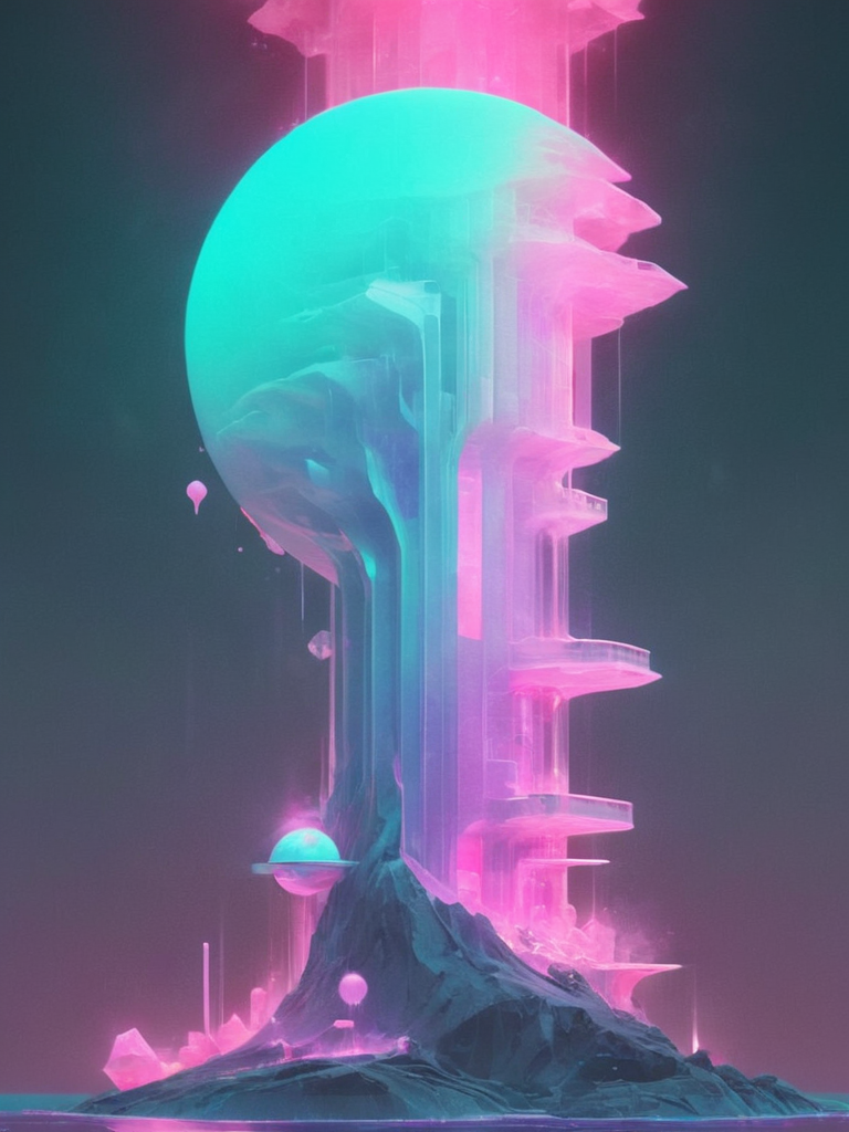 masterpiece photo of artfully oracle,geometric abstraction,futurist illusionism, living at the edge of the future digitally geometric and the past fantasy spirit world, masterpiece,liquid graphite, (neon synthwave background:1.5) <lora:xl_more_art-full_v1:0.25> <lora:mentixis:0.8> mentixis, metix, cyan <lora:low_poly_count:1.3> low poly count, style by Hsiao-Ron Cheng, intricate flat drawing, bright pastel, ultra realistic, simple composition, fun colors, high contrast, Unreal Engine, highly detailed