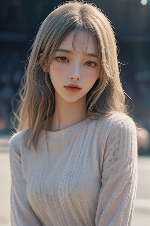 (RAW photo, best quality), (masterpiece:1.2), (realistic, photo-realistic:1.3), best quality, highres, extremely detailed CG, perfect lighting, 8k wallpaper, Amazing, finely detail, ultra-detailed, A beautiful girl, white streaked hair, middle blond hair, greatest glamorous, bare breasts, Wembly stadium background,