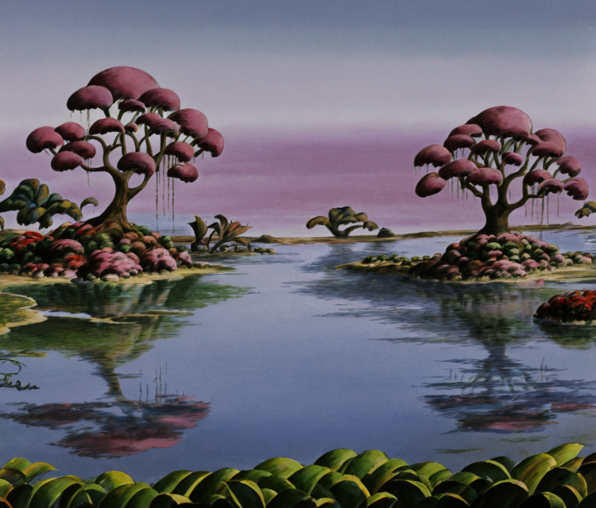 masterpiece,high resolution,8k, fantasticplanet,scenery,landscpae,water,cloud,tree,plants, ,<lora:fantasticplanet-xl:0.8>,