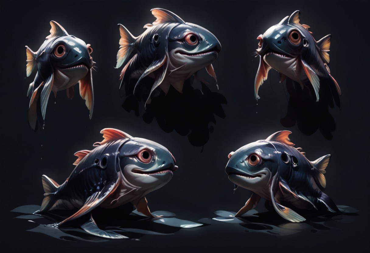 score_9, score_8_up, score_7_up, score_6_up, score_5_up, rating_explicit, source_western, Jabstyle, BREAK, deepocean, Character Design page, several views on sheet, (side views only:2), no humans, humanoid, antro, page with several different sea stingray, tentacles, view of funny fish, random color, BREAK, view of ocean fish, random color, BREAK, view of beautiful fish, random color, BREAK, view of monster fish, random color, BREAK, view of ugly fish, random color, BREAK, view of fish with mutations, random color, BREAK, bioeliminations, glow spots, glow liquids, wounds, teeth, opened mouth or closed mouth, thick fish or fat fish, long fish or short fish, big fish or small fish, round fish or flat fish or triangle fish, shake fish or deep fish or tropical fish or ghost fish, perfectly drawn, detailed, beautiful, detailed textures, volumetric bouncing lighting, reflections, full fish, full body, illustration, conceptart, multiple views, simple background, (simple flat black background:2),