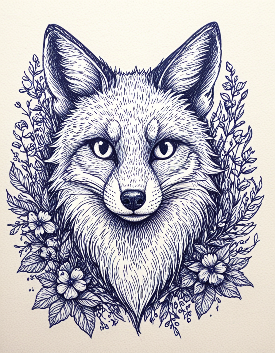 novuschroma42 style cat fox with flowers ballpoint pen drawing <lora:novuschroma42 style_blue:1> <lora:sdxl_lightning_8step_lora:1>