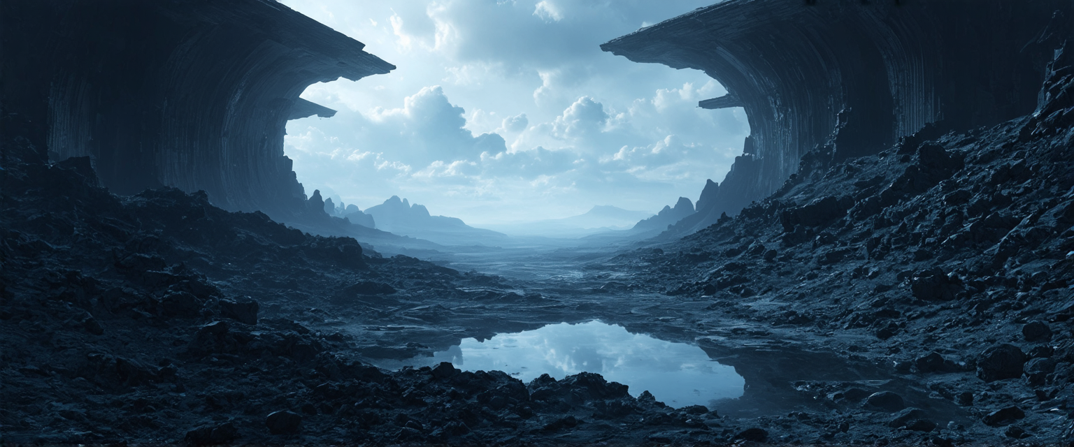 dark art by Agustín Fernández, sci-fi style concept art landscape , megastructures sci-fi dark pompeii colossal scale artstation, futuristic, technological, alien worlds, space themes, advanced civilizations, cybernetic style concept art landscape , megastructures sci-fi dark pompeii colossal scale artstation, futuristic, technological, cybernetic enhancements, robotics, artificial intelligence themes, , surrealism, metaphysical, dreamlike, symbolic