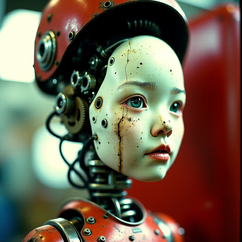 [geisha:cyborg:3], many mechanical details,seams, scuffing, rust,(style by James Jean),shallow depth of field, vignette, (Fujicolor Superia X-TRA 400)