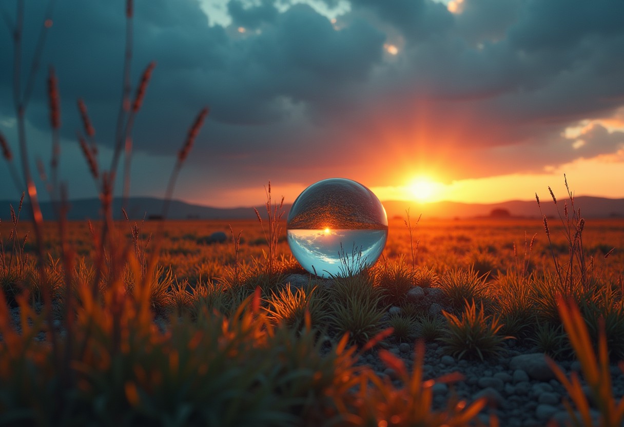 realistic light, extreme realistic refract_deflect_diffract ball, perfect lens, landscape, vibrant colors, hight quality, (((masterpiece))), photo 38mm, 8k uhd, high quality, film grain, super detailed, super realistic, cinematic, hight detailed, amazing composition, ultra hight quality light aberration, realistic shadows