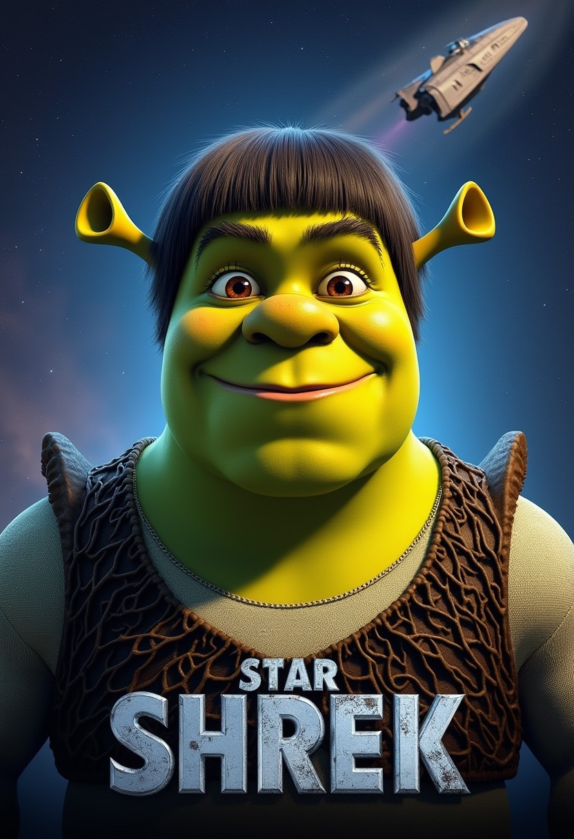 a digital illustration of a movie poster titled "Star Shrek", Shrek parody poster