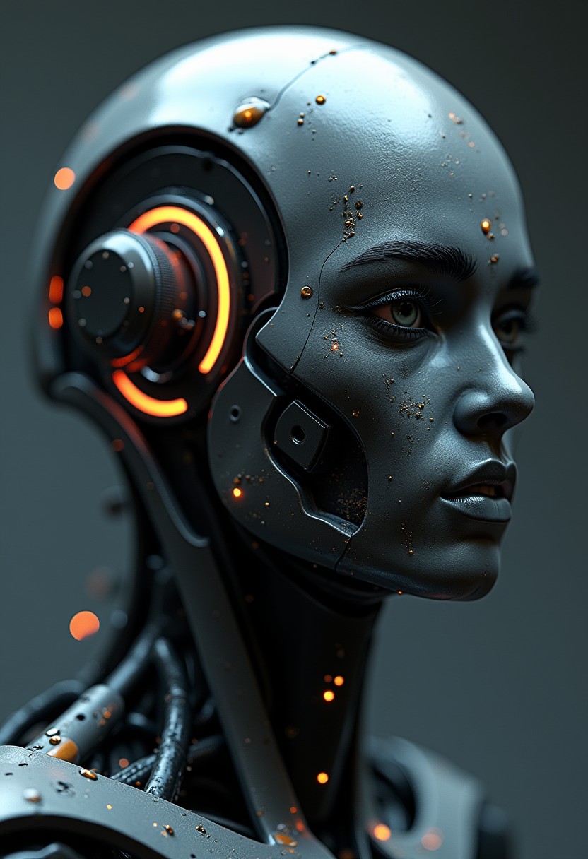 ,3d model, 3d render, cyborg's head 3d octane render,carbon material body parts, ultra photorealistic, 8 k hyper detailed image unreal engine, the art contemporary art by adolf hiremy hirschl, shallow depth of field, vignette,