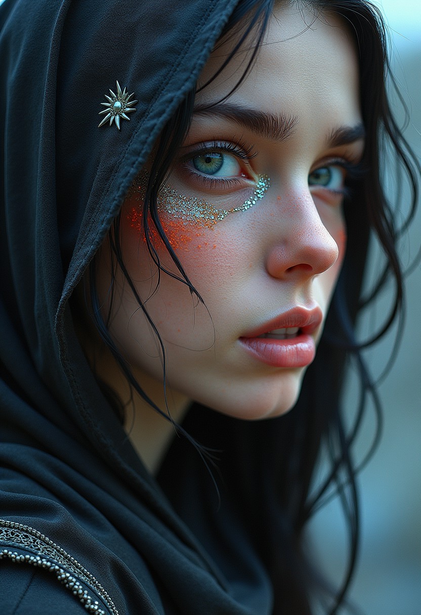 D&D style female portrait, fantasy, by Edward Julius Detmold, digital art, In a world where woman have come to life, the iconic portrait of one has been brought to life. The portrait is made entirely out of shimmering acrylics, with intricate patterns. Her eyes, once dark, in focus, Sci-Fi, detailed face