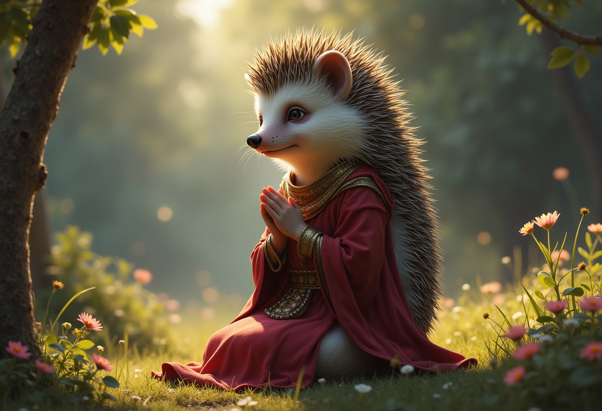 female Hedgehog-priest, rpg portrait, digital art, masterpiece, sexy. Kneeling in prayer