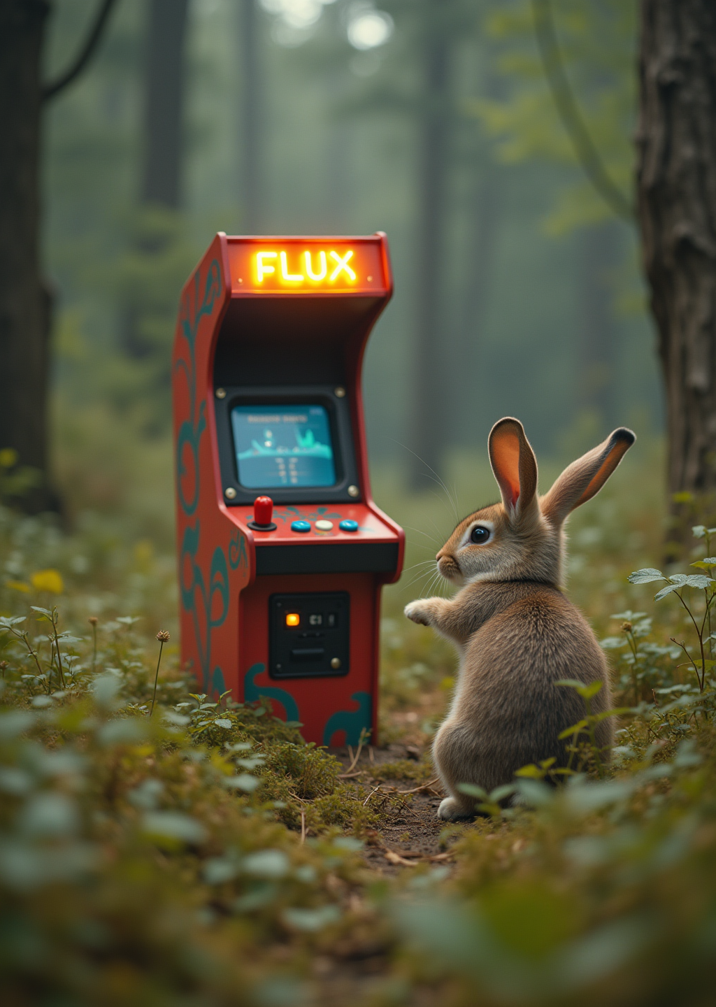 nature photography of a wild FLUX arcade chasing down a helpless rabbit