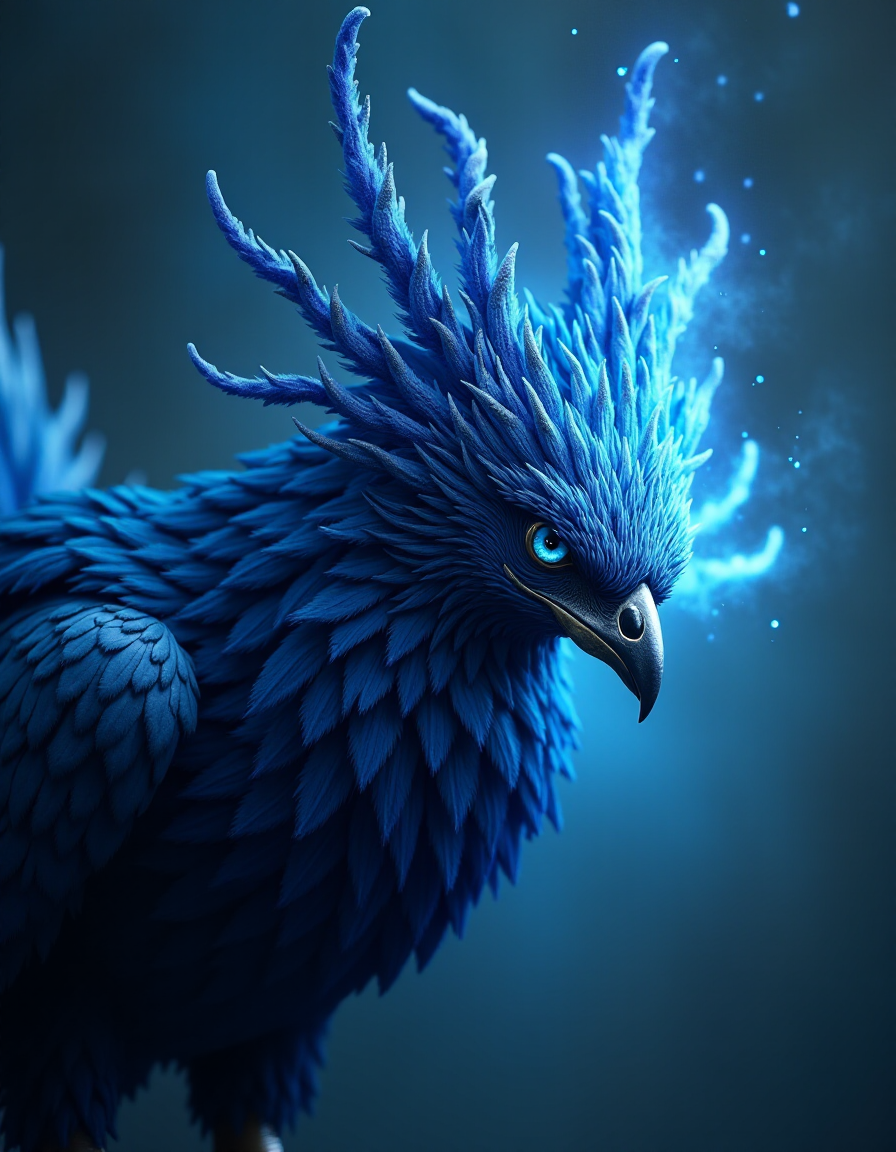 ethereal fantasy concept art of Dark Fantasy Art, Medievalism, hyperrealistic art portrait of a very realistic and photorealistic blue phoenix bird expelling blue fire, . extremely high-resolution details, photographic, realism pushed to extreme, fine texture, incredibly lifelike, inspired by The Middle Ages, medieval art, elaborate patterns and decoration, Medievalism, dark, moody, dark fantasy style . magnificent, celestial, ethereal, painterly, epic, majestic, magical, fantasy art, cover art, dreamy, RAW candid cinema, 16mm, color graded portra 400 film, remarkable color, ultra realistic, textured skin, remarkable detailed pupils, realistic dull skin noise, visible skin detail, skin fuzz, dry skin, shot with cinematic camera