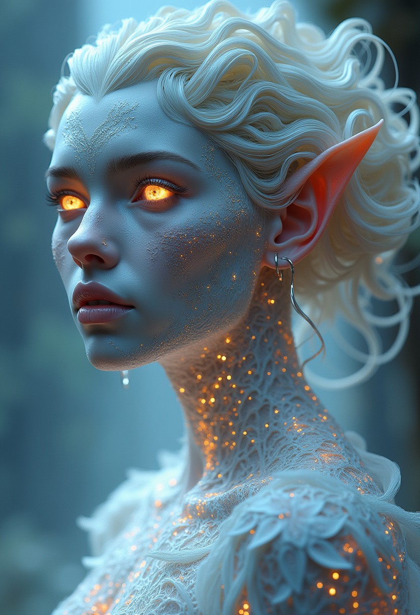 Insanely detailed photograph of An elaborate beautiful holographic grey woman goddess intricate glowing skin eyes shiny white scales dress intricate face hair lashes hyperdetailed painting by Ismail Inceoglu Huang Guangjian and Dan Witz CGSociety ZBrush Central fantasy art album cover art 4K 64 megapixels 8K resolution HDR Greek shiny space colours jewelry celestial hair eyes light