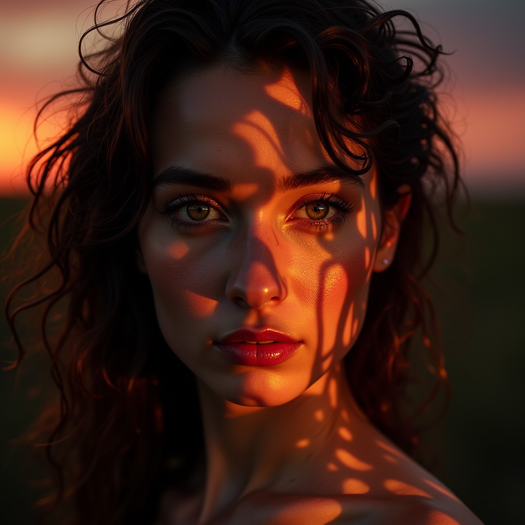 the juxtaposition of the concepts of light and darkness as good and evil, set within the face of a beautiful young woman, sunset, beautiful lighting, Dynamic, Stylish, Intricate, Expertly crafted, Ambient Lighting, reflection shot,