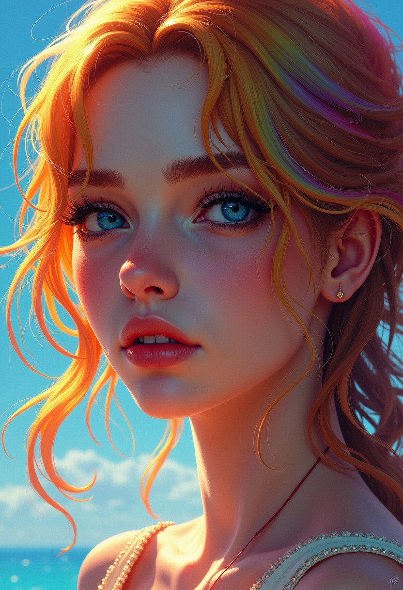 rainbows and sunshine, vibrant colors, hdr, Fantasy art by Aleksi Briclot, erotic drawing, 1 female, close up , full body,