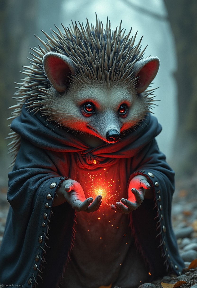 Hedgehog-necromancer, RPG portrait, masterpiece, digital art, casting grim spell