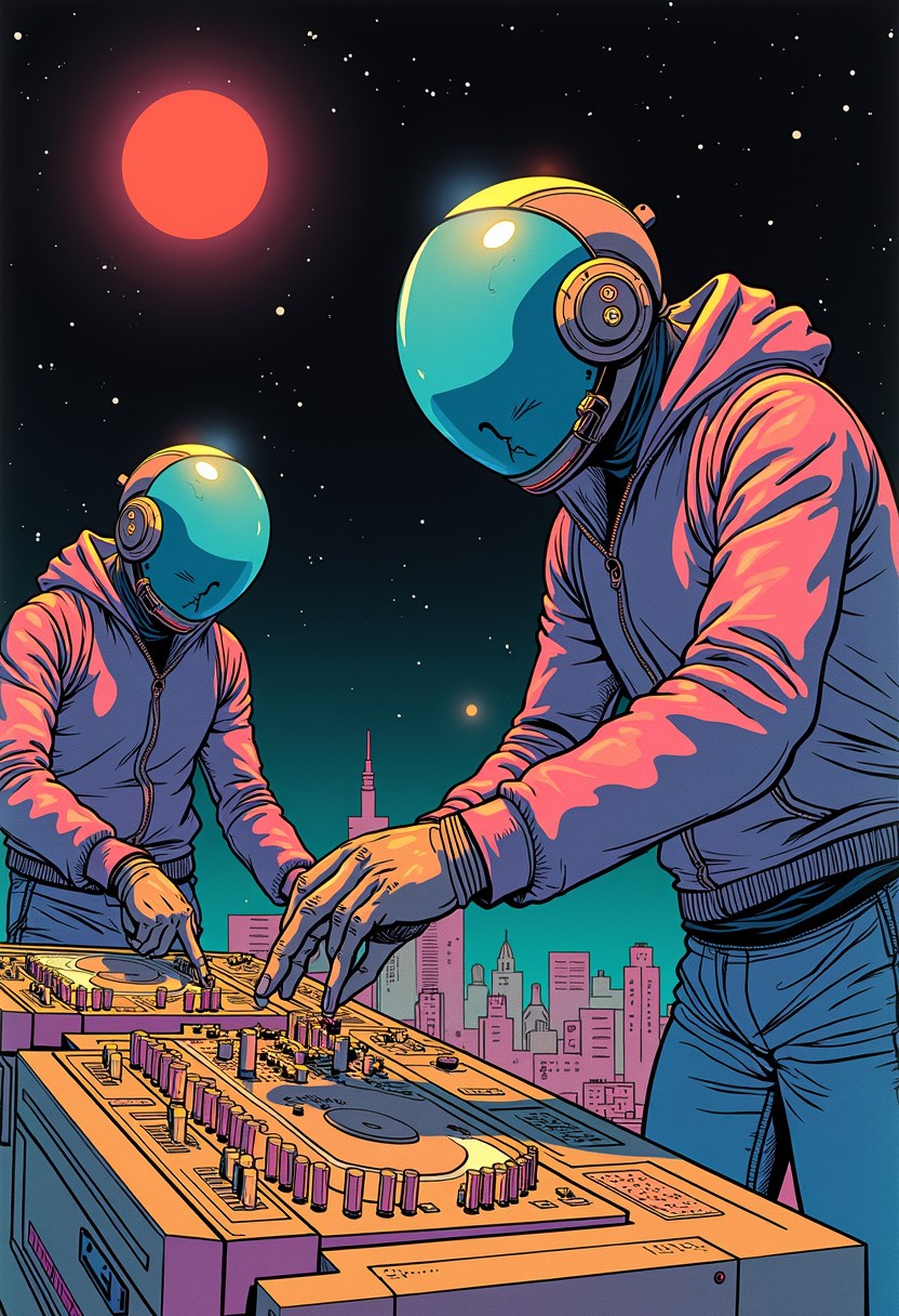 the two daft punk mixing music in moebius style