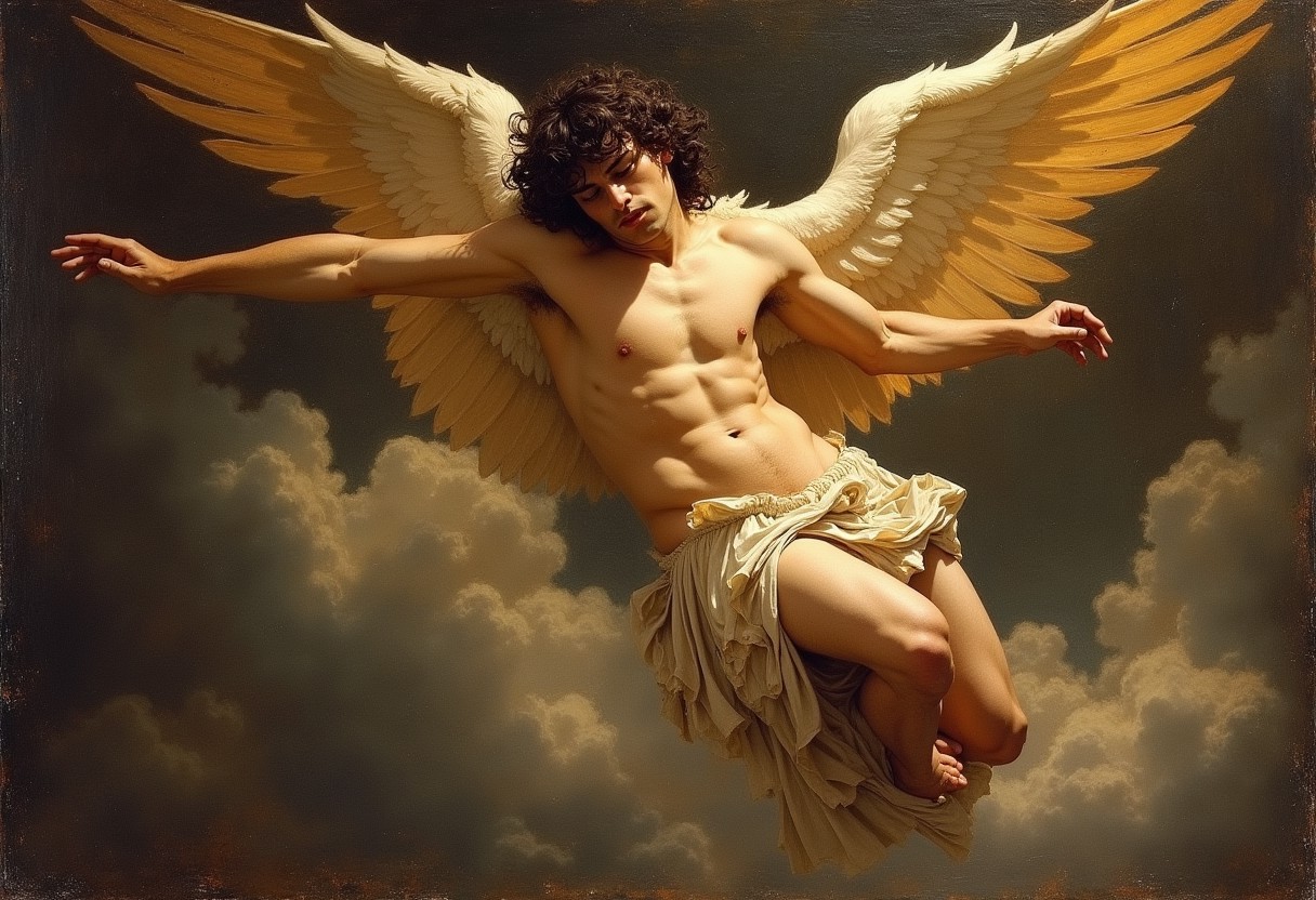 masterpiece oil painting, Eren Yeager in the fresco “The Fallen Angel” by Alexandre Cabanel
