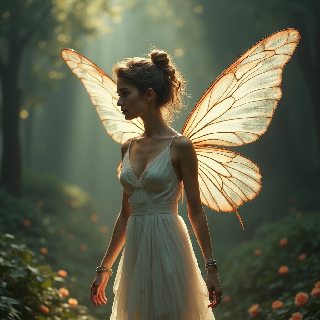 A beautiful ethereal fairy with the phrase "men are only nice to me when I am starving" around her