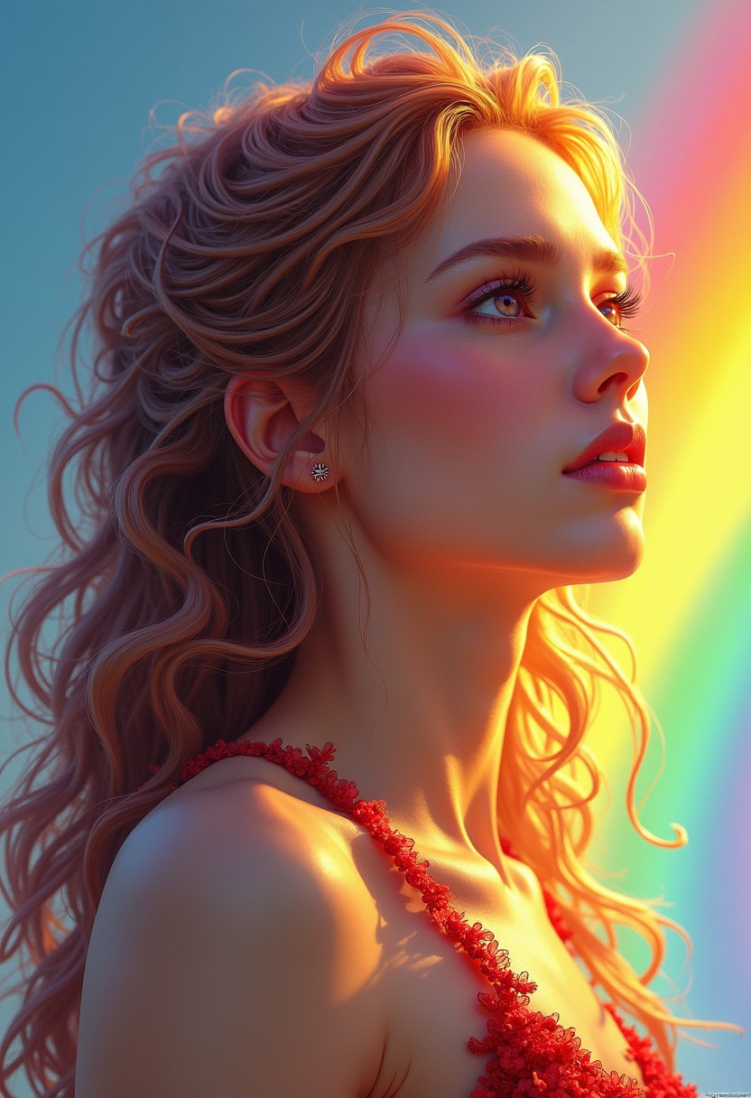 rainbows and sunshine, vibrant colors, hdr, Fantasy art by Aleksi Briclot, erotic drawing, 1 female, close up , full body,