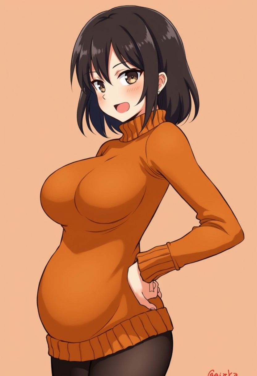 1girl, large breasts, Velma, orange turtleneck sweater, bottomless