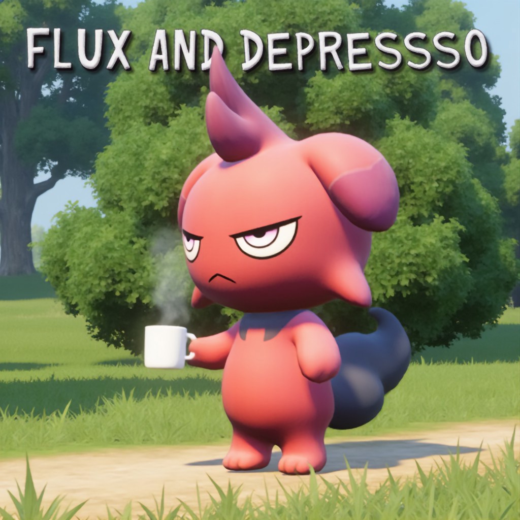 Depresso, park, holding bubble tea, text "Flux and Depresso" Below is the text "I spent 120 buzz"