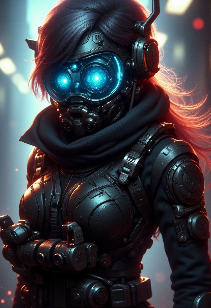 FFAOR, 1woman, sci fi pilot, sci fi equipment, glowing blue visor over eyes