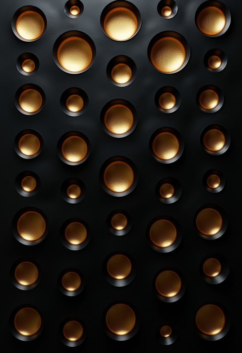 High definition wallpaper with black base layer, BREAK, 10 rows and 5 colums of large symetrical identical distinctive holes with gold rims, 2d, high resolution