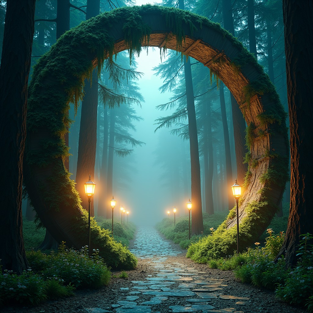 A double-exposure photographic image combining (Magic City of Magic) and (Magic Portal of Pure Energy), ((Magic Portal of pure Energy in the center of the dark starry sky)), ((inside the Magic Portal of Pure Energy)) ((The magical city of magic in the film about the fairyland of wizards and fairies, Dense trees, Magical energies, Magical vibes, A street of a magical city covered with thick green moss and green vegetation with bright magical flowers, Magical energies hovering in the distance, cascading waterfalls of magic and magic lanterns glowing in the dark, Beautiful magical buildings in magical light, A great story)) finely inscribed into the magical portal of pure energy, Clear focus, Great depth of field, Double exposure, hyperrealistic, extremely detailed, ray-traced, Cinematic, HDR, Photorealistic (Double exposure: 1.3), Exposure 1 - The Magic Circle of Pure Energy, Exposure 2 - The Magical City of Magic