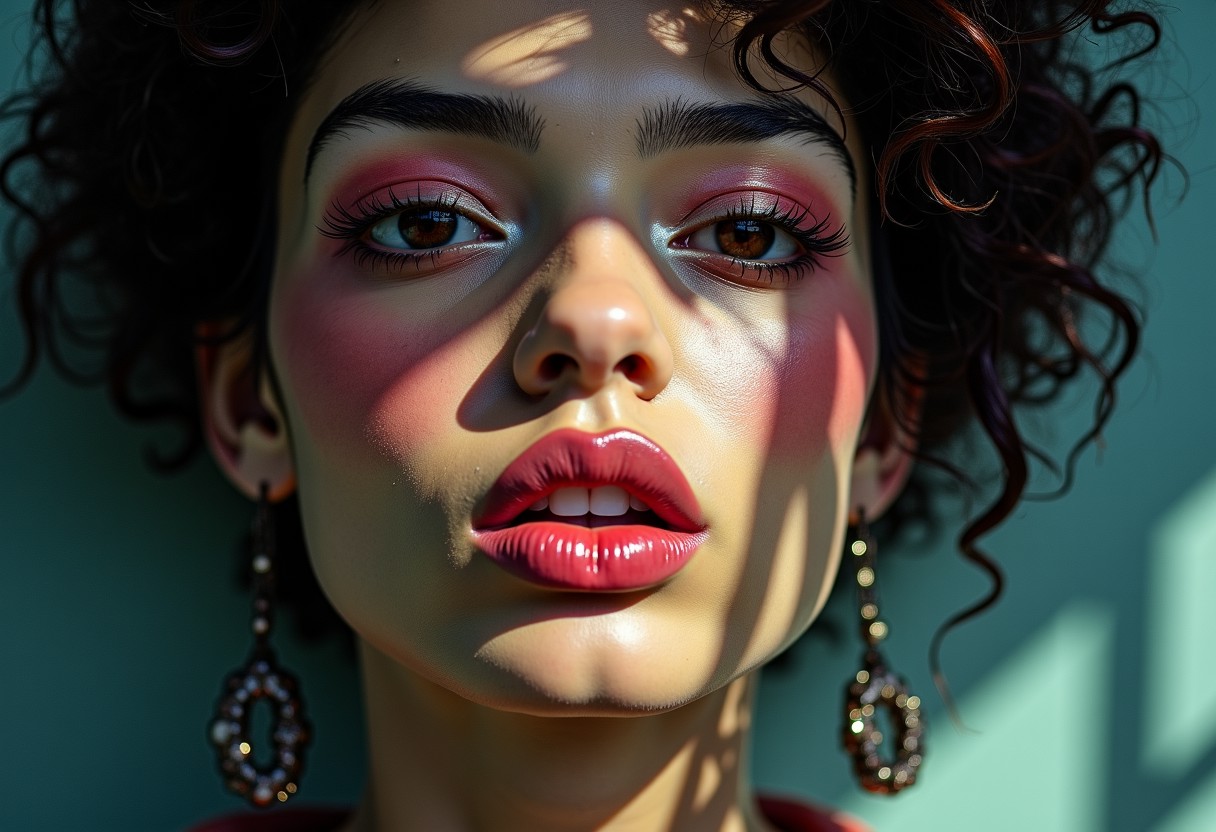 Face of a beautiful pinup, art by Ray Caesar, Tokujin Yoshioka, Januz Miralles, Jeanloup Sieff, Joan Fontcuberta, dynamic play of shadow and light