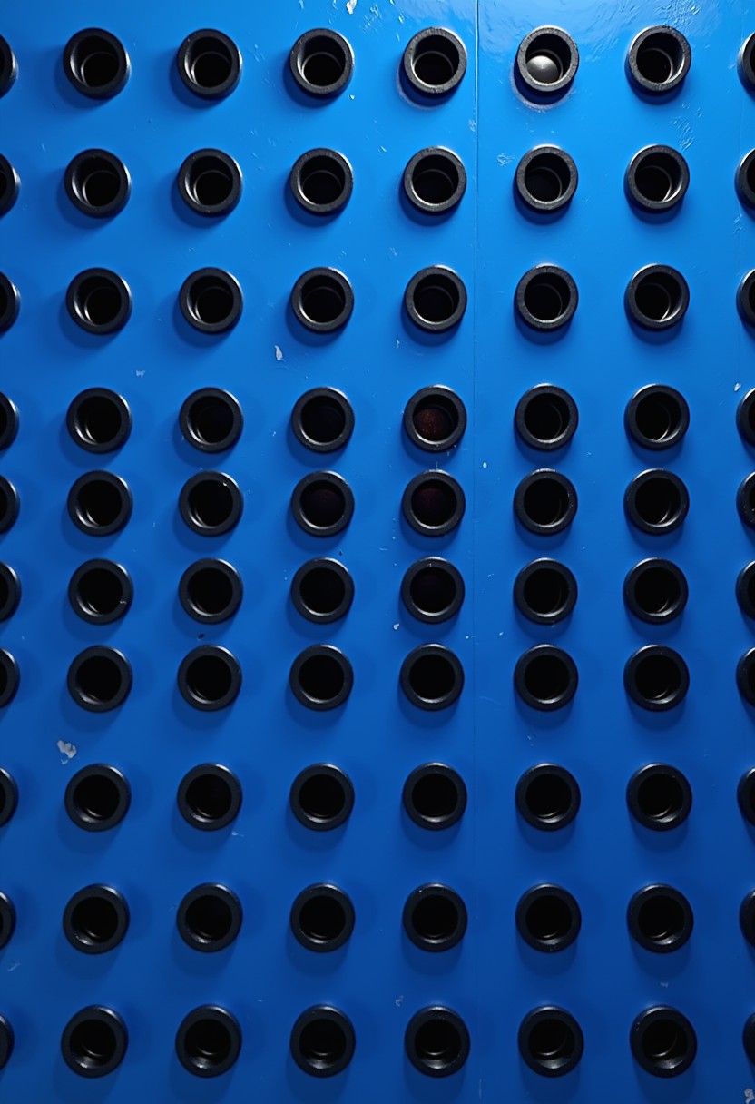 High definition wallpaper with royal blue base layer, BREAK, 10 rows and 5 colums of large symetrical identical distinctive holes with black rims, 2d, high resolution