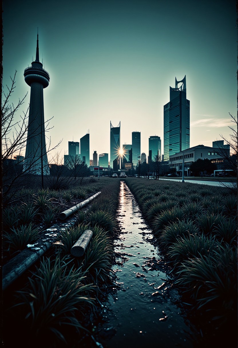 photograph, landscape of a Nashville, Evil, by GLaDOS, anaglyph filter, realism, , detailmaximizer. secretlab,