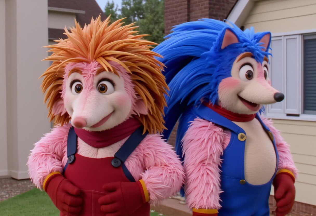 A DisneyStudio cartoon of KippiBenKippod and Sonic standing back to back with a serious look on their faces