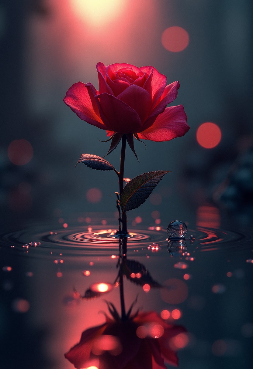 source_anime, no humans, water droplet shape, colored outline, bokeh, colors, swirling colors, a rose, transparent water, silhouette. highly detailed and hyper realistic photo, by Alena Aenami , by Archibald Thorburn , by Daniele Afferni , in the style of monochromatic silhouette reflection, limited dark palette, unusual dark colors, faded colors, atmospheric haze, highly dramatic cinematic lighting, motion blur, film grain, professional, excellent composition, finest details, maximized details, ultimate detail level, masterpiece, best quality