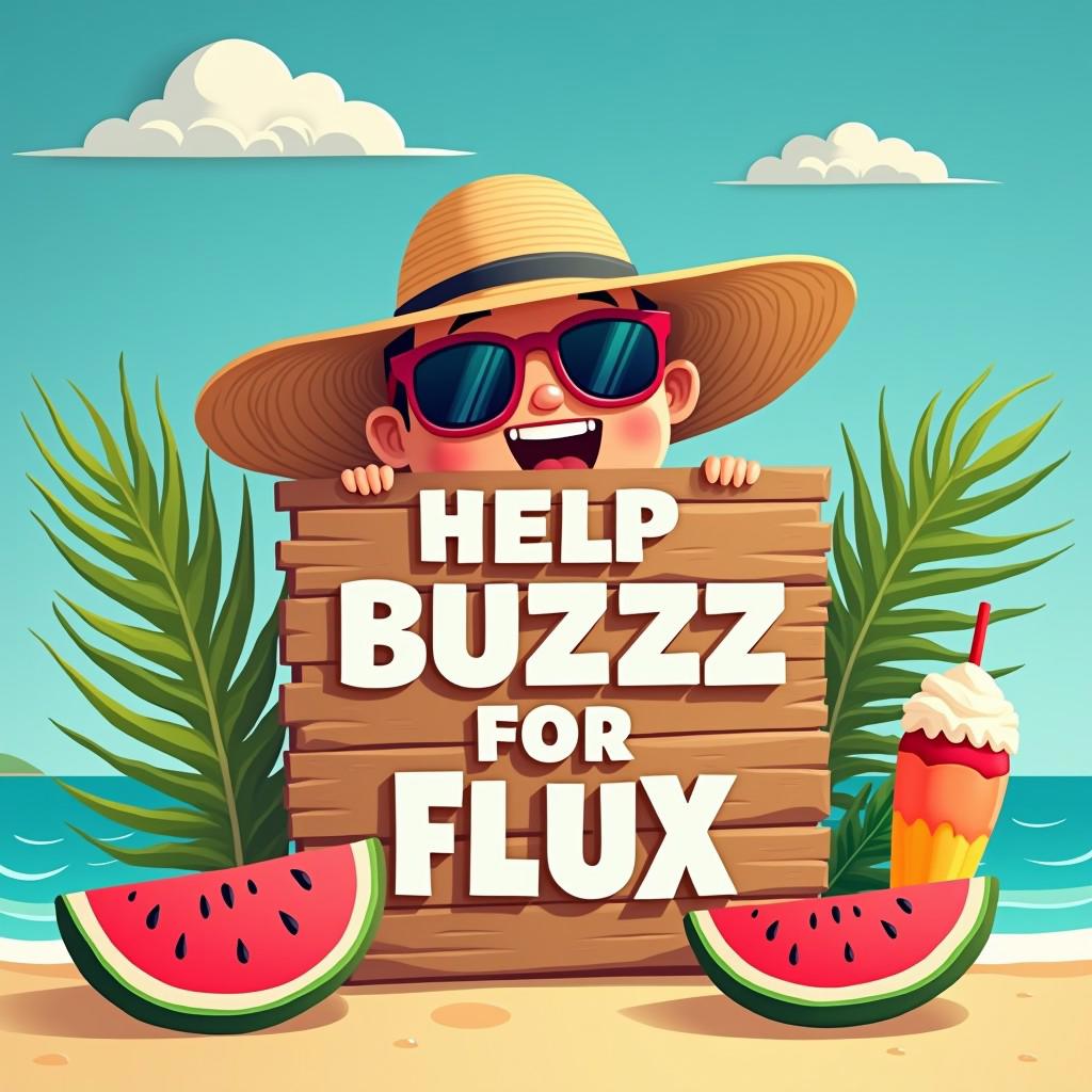 HELP NEEDS BUZZZ FOR FLUX with Wooden Sign and Tropical Beach Elements,Vector of Summer Sale Banner or Poster template with Hat,Sunglasses,Watermelon,Ice Cream,Beach and Tropical Elements