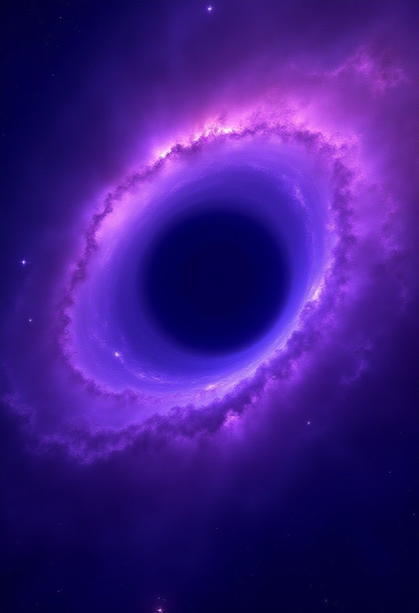 A highly detailed black hole floating through the galaxy, purple accretion disc, absurd resolution, masterpiece, stars and pink nebulae in the background