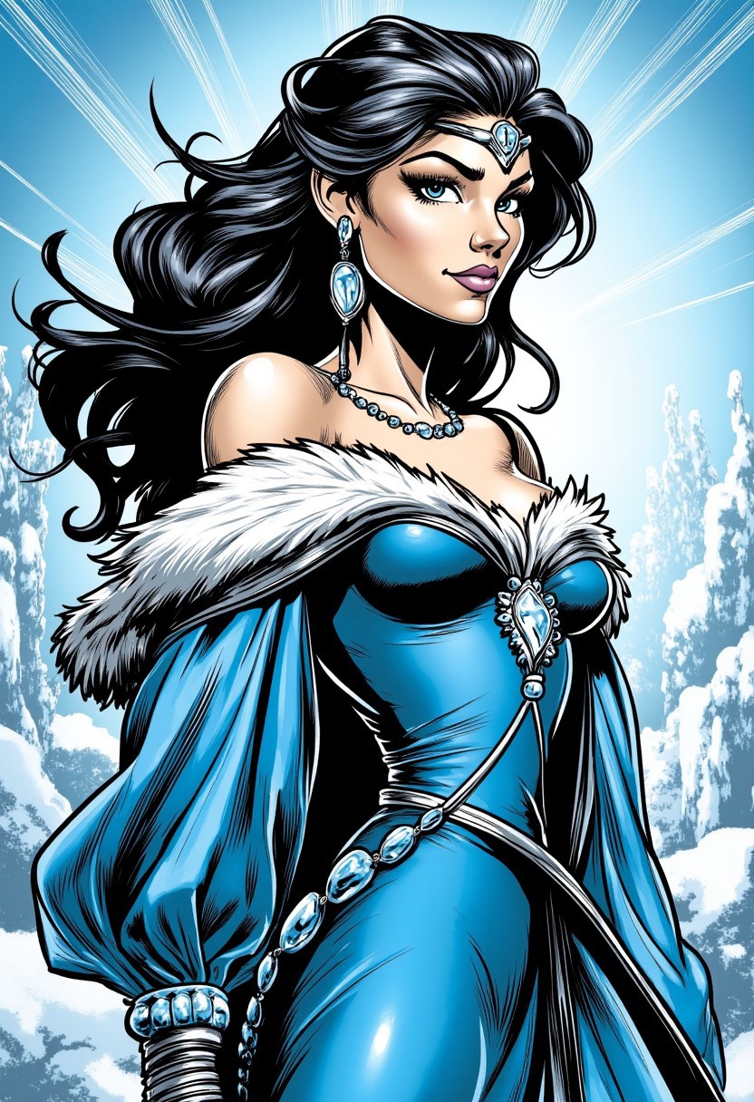 score_9, score_8_up, 8, score_7_up, score_6_up, solo, colorful, 1 female shaman, lady of ice, blue dress, fur cape, black straight hair, abstract ice jewelry, crown of ice, snow, tundra score_9, score_8_up, score_7_up, score_6_up, Expressiveh, highly detailed,