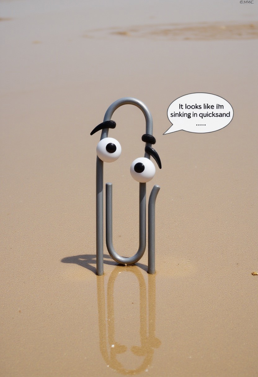 clippy partially submerged in hud_quiks4nd, quicksand, mud. speech bubble: "it looks like I'm sinking in quicksand...!"