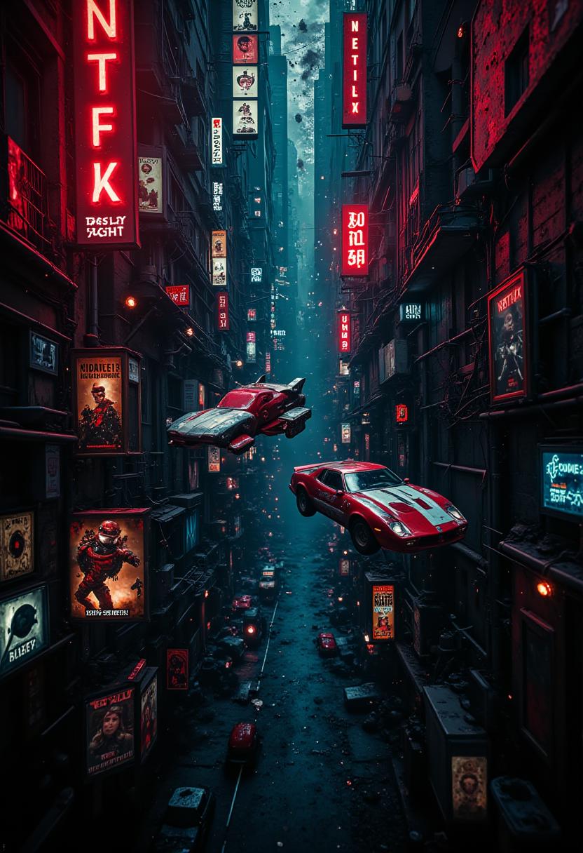 secretlab, movie themed background that has a netflix look with images of movies extremely heavy gravity effect