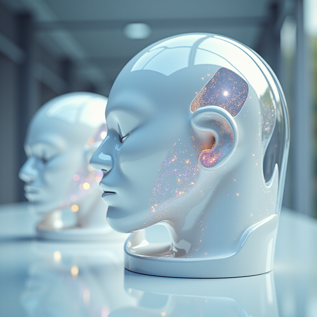 close-up frontal view of iquid vismut+glass+organic ceramic white material of symmetrical sci-fi cyberpunk tehnological , Hologram wireframe back of them, futuresynth fix tool equipmen, thin film, iridescent colours, minimalism, perfect detailed, octane render, 3d, 8k post-production, + 35mm + anamorphic + lightroom + cinematography + bokeh + lens flare + film grain VFX, SFX
