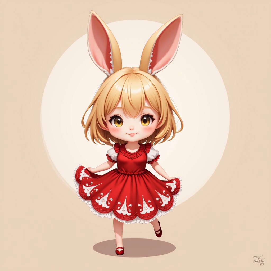 a cute bunny girl in a red dress, TzigoAnimeStyle