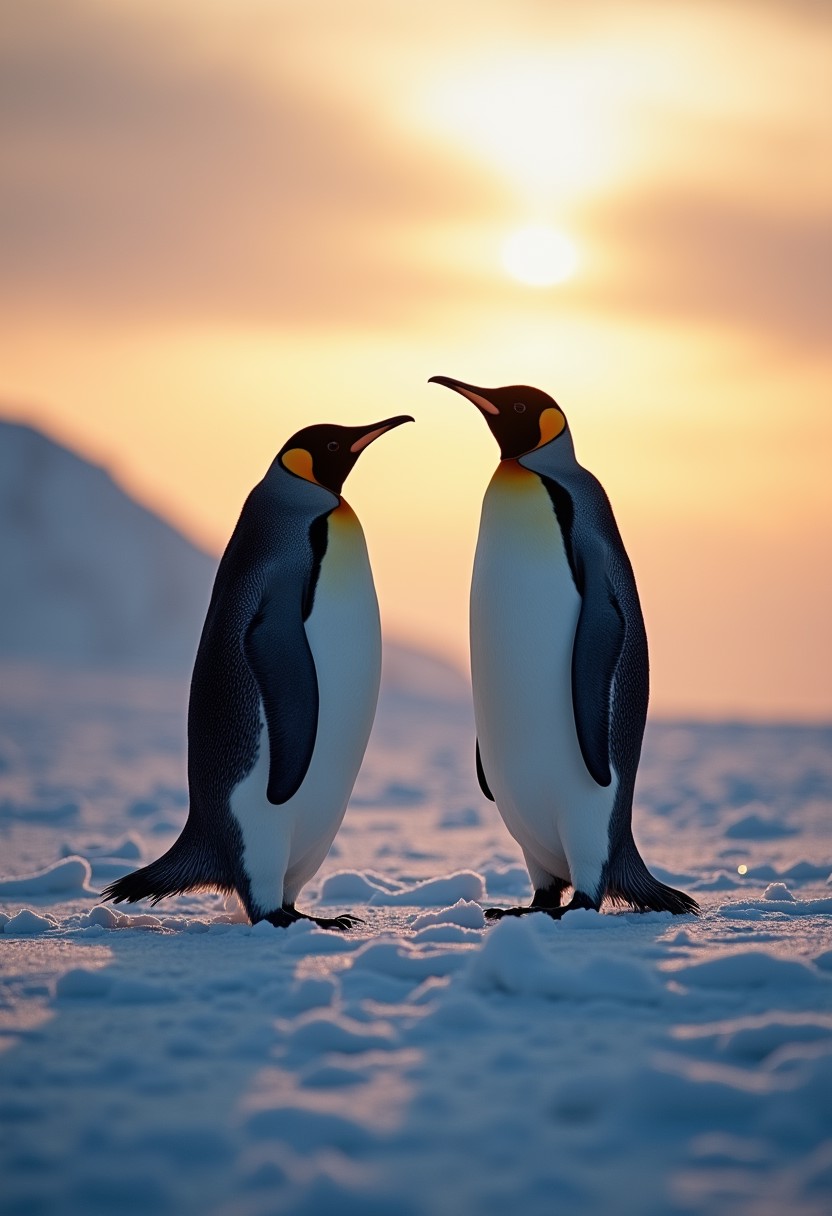 masterpiece, photo of a king penguins, silhouetted in antarctic winter, highest definition, HD32K, wallpaper