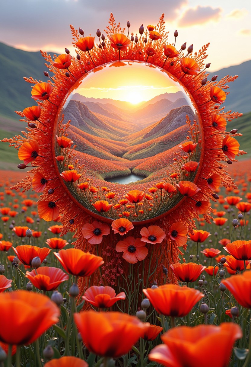 A beautiful statue of a sun made of poppy,red,flowers,8k,photorealistic,