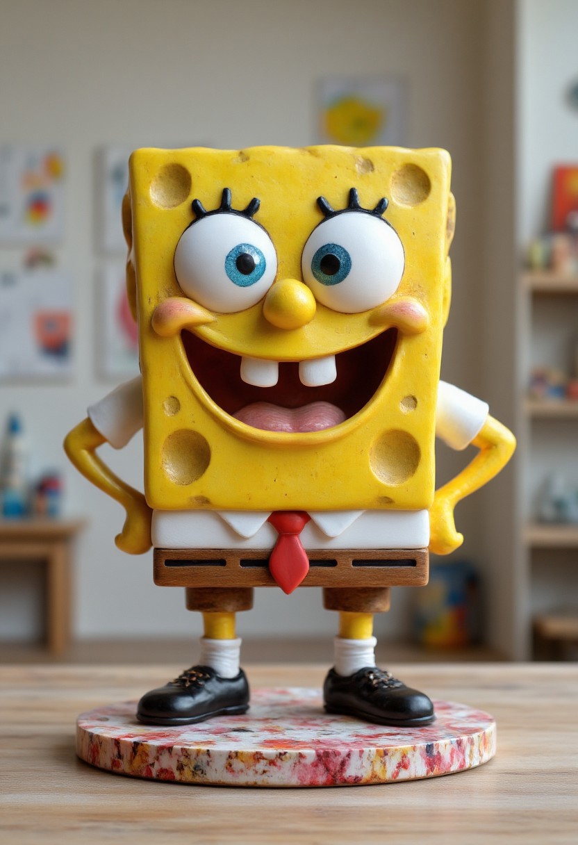 Relief of A comical, exaggerated scene of Spongebob Squarepants standing with his hands on his hips, bent over slightly with a goofy, distorted expression on his face. His eyes are crossed, and his mouth is twisted into a mocking, sarcastic smile. The background is a simple, lightly colored room that doesn’t distract from Spongebob’s exaggerated pose. The overall tone is light and humorous, emphasizing the mocking, sarcastic attitude Spongebob is displaying.